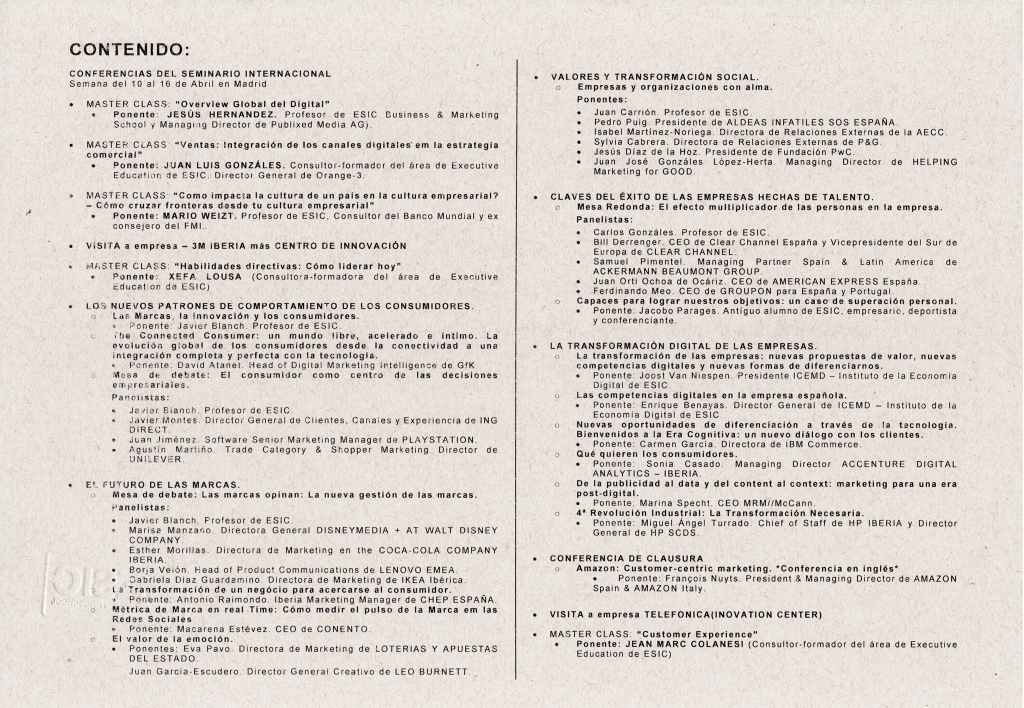 – 08h00: Conferência na ESIC Madrid.